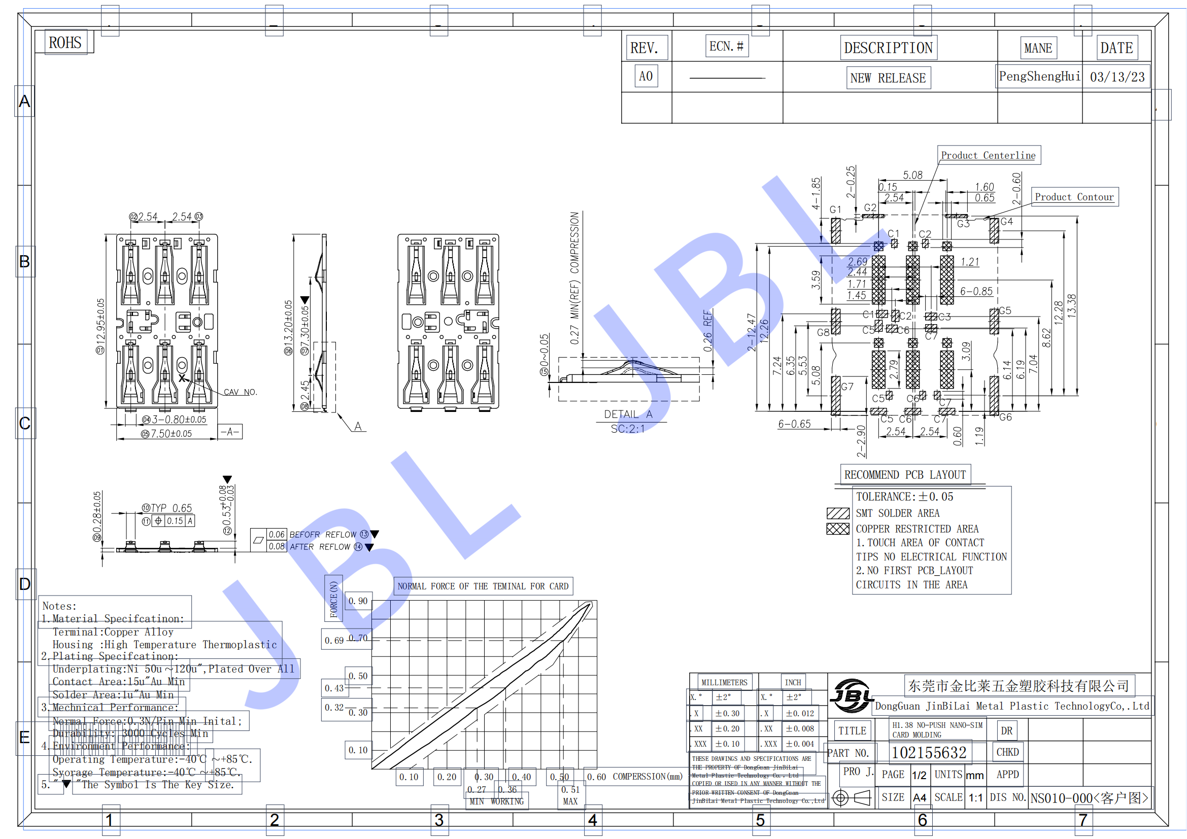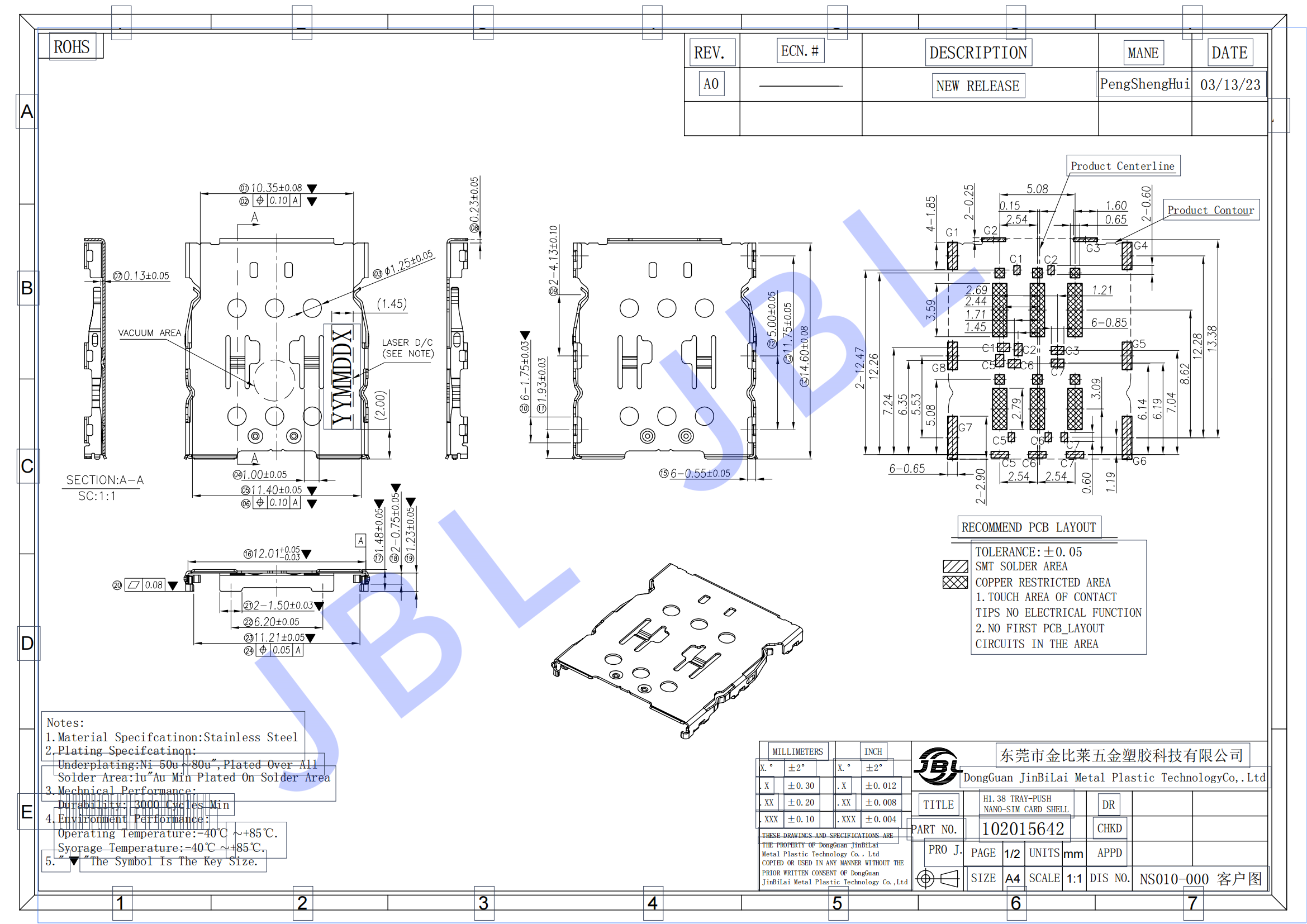 • NANO SIM分體式卡座手表SIM卡卡槽-防潰pin-JBL