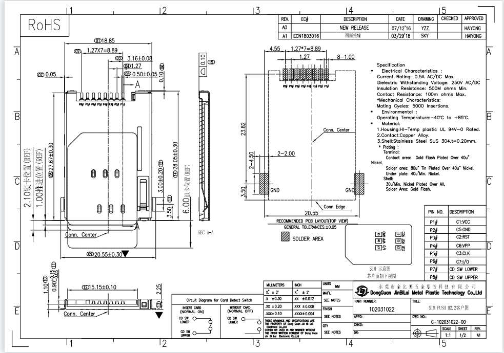 102031022-SIM PUSH自彈式卡座 6+2P H2.2卡槽
