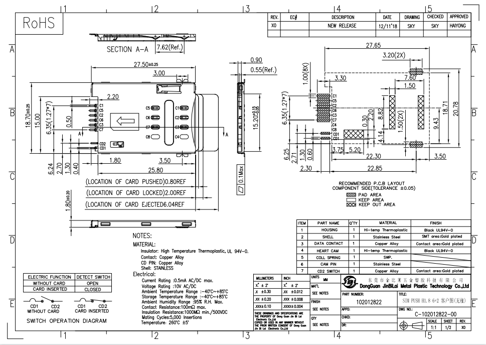 • 102012822-SIM PUSH卡座 H1.8 6+2(無柱)卡槽