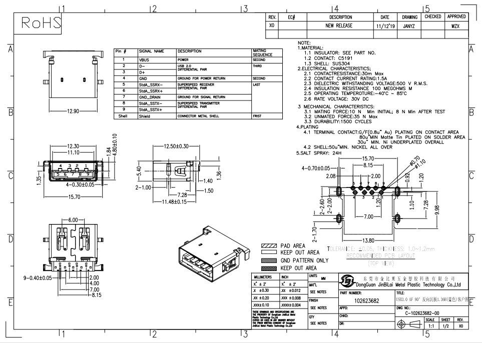 102623682-USB3.0反沉母座 板上1.36平口四腳連接器