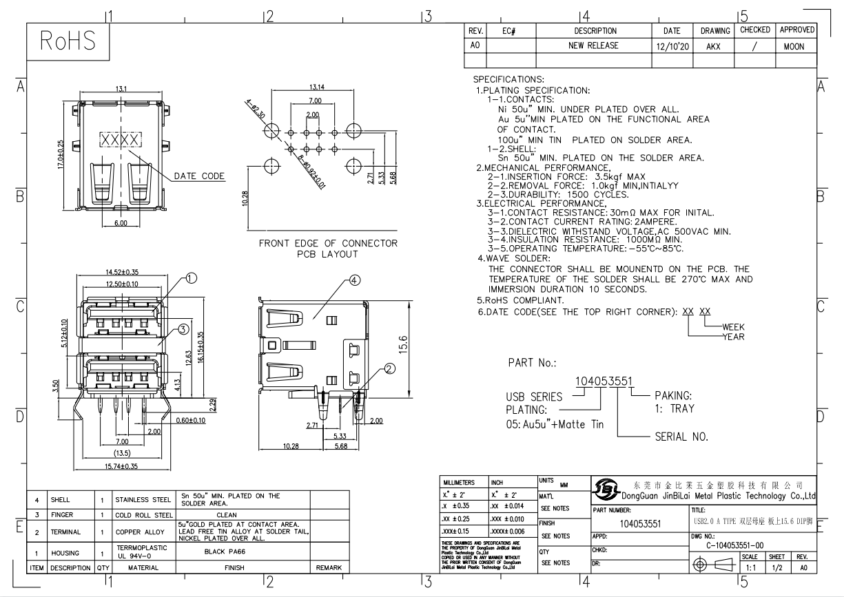 104053551-USB2.0 A TYPE 雙層母座