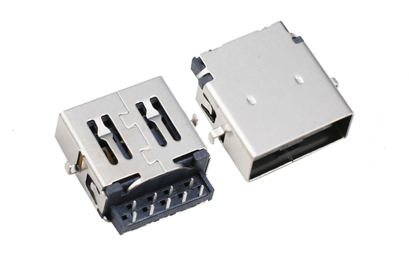 104012902-usb3.0反沉連接器 平口兩腳母座 藍(lán)色膠芯