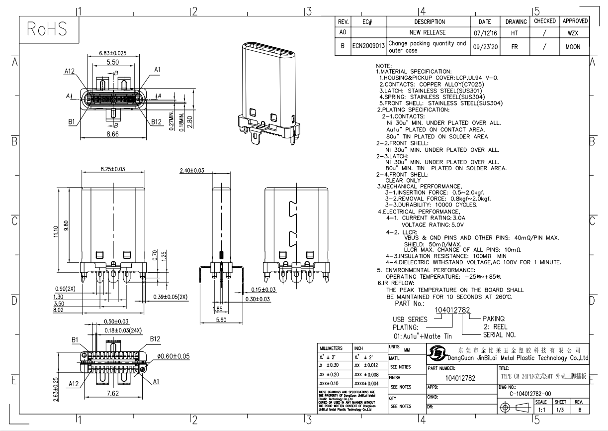 104012782-TYPE CM 24PIN立式SMT 外殼三腳插板