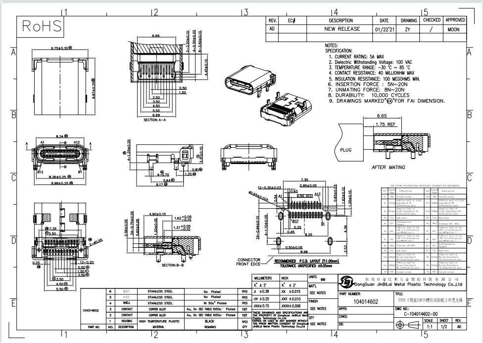 【名 稱】:TYPE-C 24P U4母座 板上全貼連接器