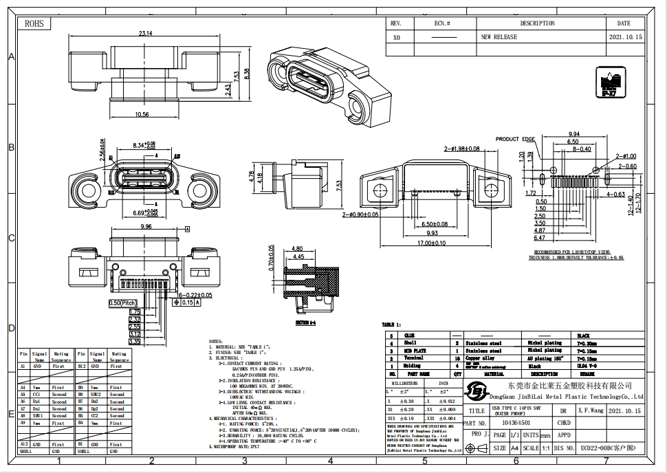 • 104364501-防水TYPE C16P smt貼片插頭 USB type-c接口母座 連接器廠家直售