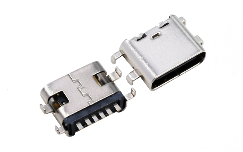 104316072-TYPE-C 6P母座沉板0.8 外殼4腳插板 充電連接器