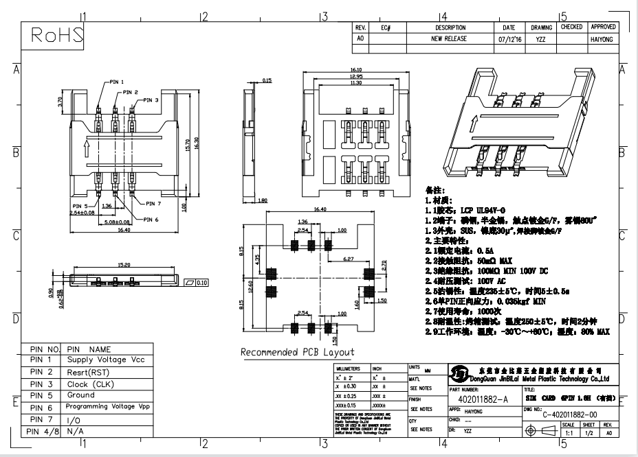 402011882-A SIM 直插式 H1.8卡座