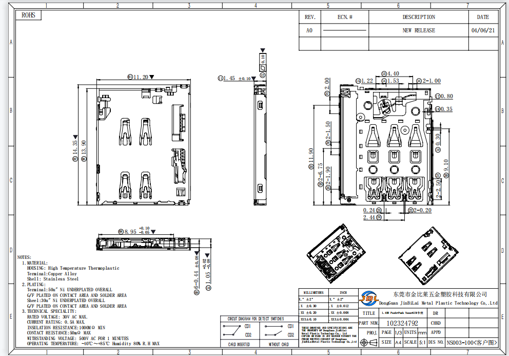 【名 稱】:Nano SIM push H1.45自彈式卡座